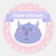 Pegatina Redonda ¡Feliz cumpleaños! Monstruo Cute Purple