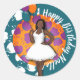 Pegatina Redonda ¡Feliz cumpleaños! Mujer negra, globos y flores