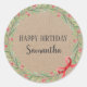Pegatina Redonda Feliz cumpleaños, Navidades florales y negras