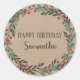 Pegatina Redonda Feliz cumpleaños, Navidades florales y negras