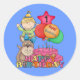 Pegatina Redonda Feliz cumpleaños, niño de globos de 1 año