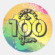 Pegatina Redonda Feliz cumpleaños número 100 a cien años en arco ir