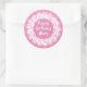 Pegatina Redonda Feliz cumpleaños número 50 Patrón rosa y blanco