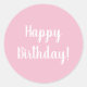 Pegatina Redonda Feliz cumpleaños Pastel Tipografía Blanca Rosa