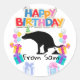 Pegatina Redonda Feliz cumpleaños, perro pooping