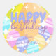 Pegatina Redonda Feliz cumpleaños, Personalizado colorido y globos