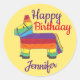 Pegatina Redonda Feliz cumpleaños personalizado: Pinata de burro ar