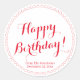 Pegatina Redonda Feliz cumpleaños personalizado rojo nombre corazon
