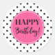 Pegatina Redonda Feliz cumpleaños puntos blancos negros rosados
