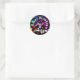 Pegatina Redonda Feliz cumpleaños, puntos de arco iris en negro