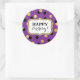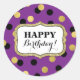 Pegatina Redonda Feliz cumpleaños Purple Black Gold Confetti