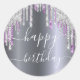 Pegatina Redonda Feliz cumpleaños purpurina brillo morado plateado