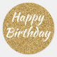 Pegatina Redonda Feliz cumpleaños Purpurina de oro