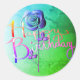 Pegatina Redonda "¡Feliz cumpleaños!" Rosa 3D de color manuscrito