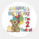 Pegatina Redonda Feliz cumpleaños Teddy Bear segundo cumpleaños