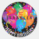 Pegatina Redonda Feliz cumpleaños y coloridos globos en negro
