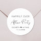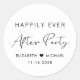 Un pegatina de moda para las invitaciones a la fiesta nupcial, favores y tarjetas de agradecimiento con "Feliz eterno después del Fiesta" en una mezcla de tipografía simple y un guión moderno y elegante, tus nombres unidos por un corazón y tu fecha de recepción.