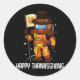 Pegatina Redonda Feliz Día de Acción de Gracias Astronauta bandera
