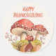 Pegatina Redonda Feliz Día de Acción de Gracias, champiñones rojos