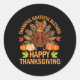 Pegatina Redonda Feliz Día de Acción de Gracias, divertido calabaza