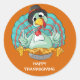 Pegatina Redonda Feliz Día de Acción de Gracias Turquía