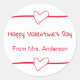 Pegatina Redonda Feliz Día de San Valentín al profesor rojo blanco