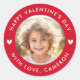 Feliz Día de San Valentín a los pegatinas presentando tu foto y texto personalizado "Feliz Día de San Valentín" y tu nombre. Color rojo y blanco o personalizado.