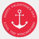 Feliz Día de San Valentín, anclaje náutico rojo y blanco, texto personalizado totalmente personalizado, elegantes Pegatinas clásicos redondos. Personalizar de texto náutico navegación de texto, nombre del capitán, nombre del barco, apellido, etc genial para marineros, barcas, vela y navegación Feliz navegación!