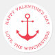 Feliz Día de San Valentín, anclaje náutico rojo y blanco, texto personalizado totalmente personalizado, elegantes Pegatinas clásicos redondos. Personalizar de texto náutico navegación de texto, nombre del capitán, nombre del barco, apellido, etc genial para marineros, barcas, vela y navegación Feliz navegación!