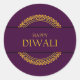 Pegatina Redonda Feliz Diwali Purple Gold Elegant Moderno