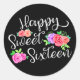 Pegatina Redonda Feliz dulce 16 cumpleaños Chica Edgy Rosas y negro
