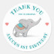 Un ilustracion de elefante pequeño. Es un tipo feliz que lleva una alfombra linda en la espalda, sólo cambia el nombre y la edad para adaptarla a tus necesidades.