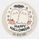 Pegatina adorable con dos fantasmas bonitos con calabazas, perfecto para decoraciones fiestas o embalaje de regalo. (Obra de arte generada por IA)