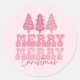Pegatina Redonda Feliz Feliz Navidad - Diseño de vacaciones rosas