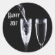Feliz 2017 Pegatina festivo de Fiesta de champán blanco negro