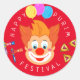 Pegatina Redonda Feliz Festival de Purim Funny Fiesta de Payasos