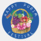 Pegatina Redonda Feliz Festival de Purim Funny Fiesta de Payasos