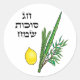 Pegatina Redonda Feliz Festival Sukkot Festividad judía Lulav Etrog