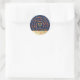 Feliz Fiesta Hanukkah Hermosa Decoración, Festividades Judías, Pegatina Clásico Redondo. Fondo judío de Hanukkah con símbolos tradicionales de Chanukah - dreidels de madera (hilatura superior), donuts, menorah de oro, velas, estrella de David y patrones de papel pintado de luces brillantes. Decoración del Festival Hanukkah. Jerusalén, Israel. Artesanías y artículos para Fiestas > Suministros para envolver regalos > Pegatinas y etiquetas
