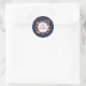 Feliz Festival Fiesta Hanukkah de luces Hermosa decoración, vacaciones judías, Pegatina redondo clásico. Fondo de las luces azules de Hanukkah con símbolos tradicionales de Chanukah - dreidels de madera (hilando arriba), donuts, menorah, velas, estrella de David y patrones de papel tapiz de luces brillantes. Festival Hanukkah Festival Evento Niños fiestas de vacaciones de cumpleaños decoración. Jerusalén, Israel. Artesanías y artículos para Fiestas > Suministros para envolver regalos > Pegatinas y etiquetas