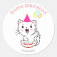 Pegatina Redonda Feliz Gato Blanco con Globos Cumpleaños