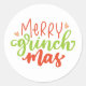 Pegatina Redonda Feliz Grinchmas Navidad Moderna y Tendencia