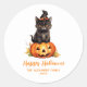 Pegatina Redonda Feliz Halloween Black Cat Witch Gorra Pumpkin