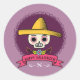 Pegatina Redonda Feliz Halloween. Calavera de azúcar.