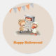 Pegatina Redonda Feliz Halloween con oso, pato y niño de la calcula