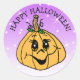 Pegatina Redonda Feliz Halloween Cute Whimscicis Calabaza Púrpura