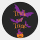 ¡Prepárense para Halloween con este espumoso pegatina! Este pegatina llamativo presenta una calabaza tallada con un gorra de brujas, acompañado por murciélagos morados voladores. Es perfecto para personalizar tus bolsos de regalo de la fiesta de Halloween.