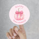 Pegatina Redonda Feliz Halloween Lazo Coquette Rosa Calabaza