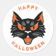 Pegatina Redonda Feliz Halloween Scary Black Cat Face