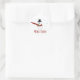 Pegatina Redonda Feliz invierno a Snowman con la bufanda roja